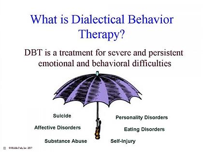 La terapia dialettico comportamentale (Dialectical Behavior Therapy) è stata ideata da Marsha Linehan per curare pazienti suicidari con Disturbo Borderline di Personalità. E’ un trattamento che integra la terapia cognitivo comportamentale con strategie di mindfulness e acceptance.